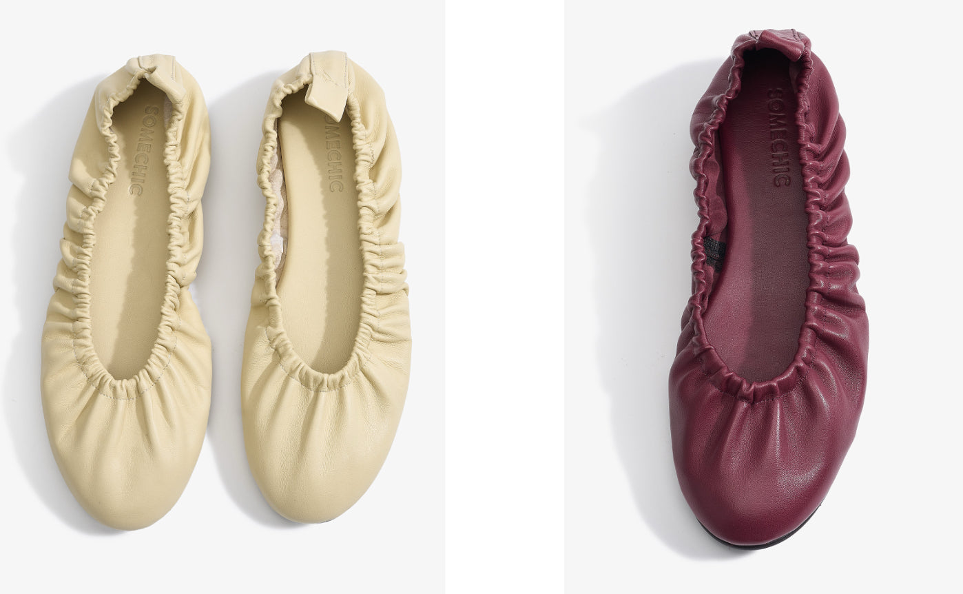 New Ellis Classic Ballet Flat— Handcrafted in Spain using premium, certified leathers. Available in Coffee, Burgundy, and Beige.